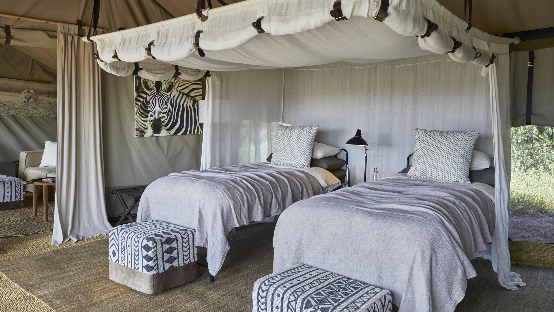 Each tent is a sanctuary where the romance of a vintage safari is brought to life through billowing linen, brass fixtures and earthy tones that echo the colors of the wilderness that envelops you. Positioned to gaze out over the plains, each tented room prioritizes comfort, with palatial beds and rainfall showers that invite ample opportunity to unwind after an action-packed day.