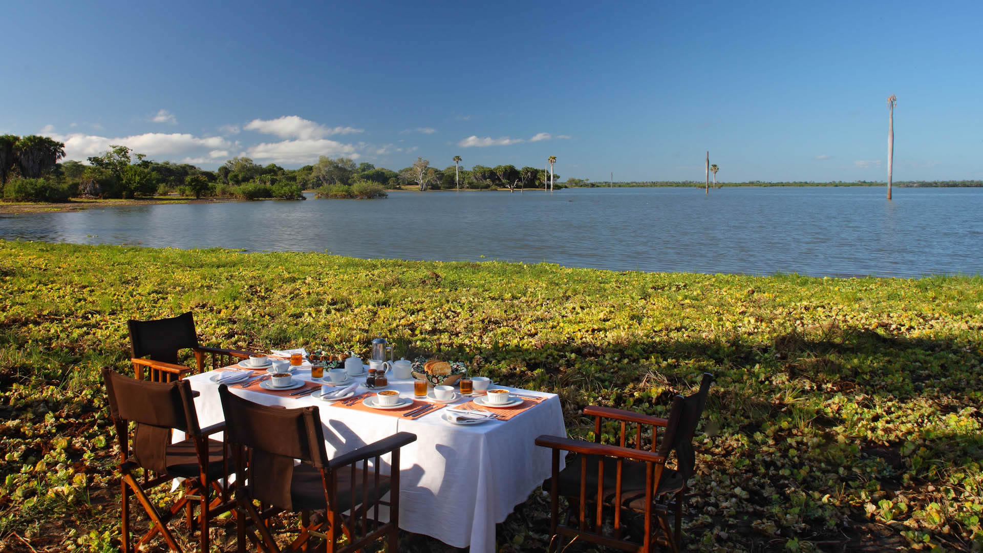 Sheltered in a grove of palms on the shores of Lake Nzerakera, part of the watery byways of the Rufiji River system, Siwandu is perfectly situated to experience fully the breathtaking landscape and abundant wildlife of Selous Game Reserve.